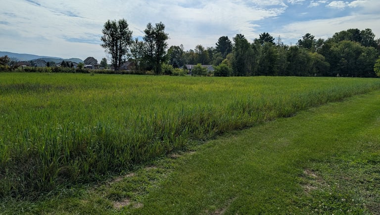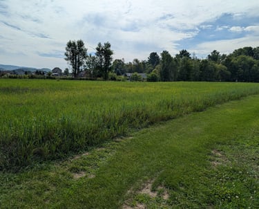 The goal of the project, carried out in collaboration with the Canadian Wildlife Federation (CWF), is to restore pollinator habitat in a meadow of over 3 acres at Place Eco Rubin. This area has been mowed for hay for decades, which explains the dominance of grass communities. It now resembles a hayfield, with very few wildflowers. The main challenge at this site is the invasive pampas grass (Cortaderia spp.), which covers about 5% of the area, with about 14 patches located in the eastern part of the meadow. During the summer of 2025, the site was plowed twice and will be plowed again in September. Oats were planted as a space keeper to suppress the growth of unwanted species. In October 2025, native wildflowers will be seeded by broadcast seeding and plugs will be planted.