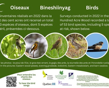 Surveys conducted in 2022 in the Hundred Acre Wood recorded a total of 53 bird species, including 5 species at risk.