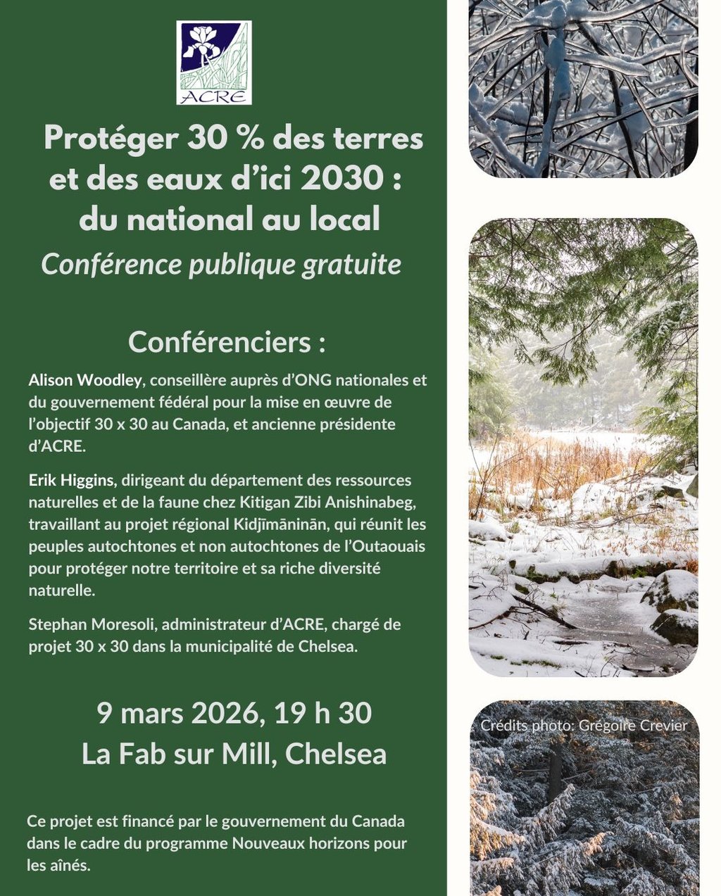 Protéger 30 % des terres et des eaux d’ici 2030 : du national au local (Conférence publique gratuite)